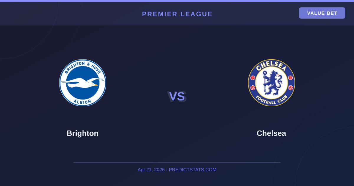The most compelling narrative heading into this fixture is the over 2.5 goals market. Both Brighton and Chelsea have seen over 2.5 goals in 100% of their last 5 games. This isn't just a streak; it’s a trend that has held for 90% of their last 10 matches combined. With bookmakers pricing this line at 1.67, they imply a 60% chance, yet the numbers back a near certainty — PredictStats' model pegs it at 100%.