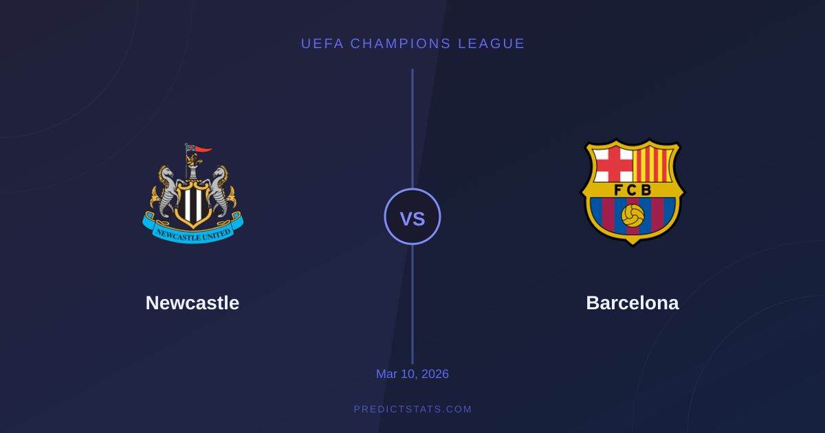 Goals Over/Under 2.5 to rynek, gdzie bukmacherzy widzą 68% szans na over, jednak model PredictStats pokazuje aż 95% prawdopodobieństwa, że linia ta zostanie pokryta. Oba zespoły regularnie pokrywają over 2.5 gola, co pokazują ich ostatnie statystyki: Newcastle w 9 z 10 meczy, Barcelona w 9 z 10.